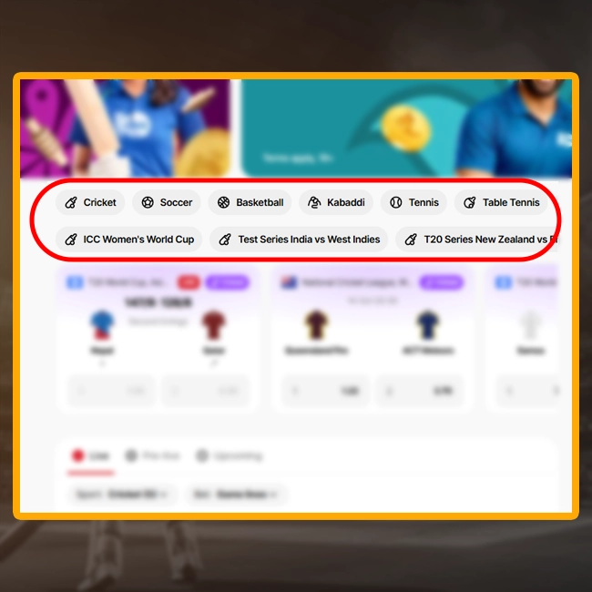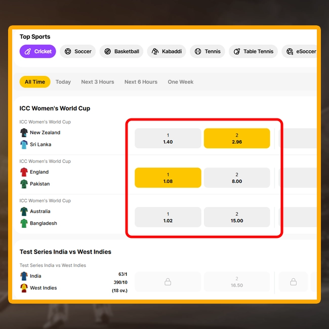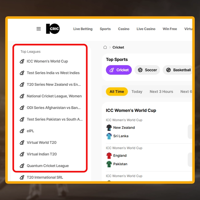 All of them are placed on the left part of the website, Suppose, you selected cricket. The further instruction is the same for any sport.