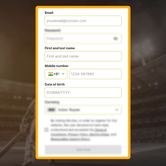 Create safe password, choose the game currency, and agree with the Terms and Conditions;
