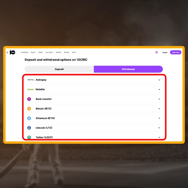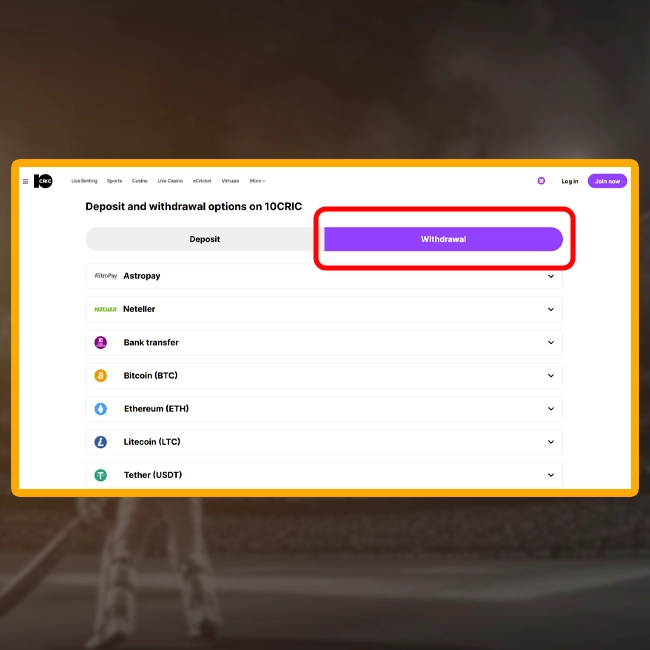 Withdrawal on 10cric is pretty similar to deposit. Notice that to cash-out money you have to complete the verification procedure. You will be asked to upload your national ID or make a selfie. These manipulations can take from 10 minutes to 48 hours.
