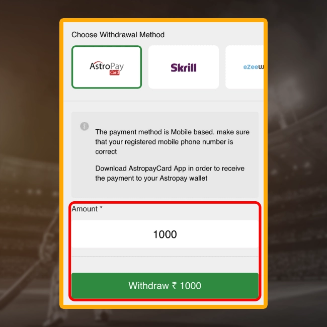 | Astropay Card | 500 | 700 000 | 2-5 days |