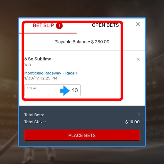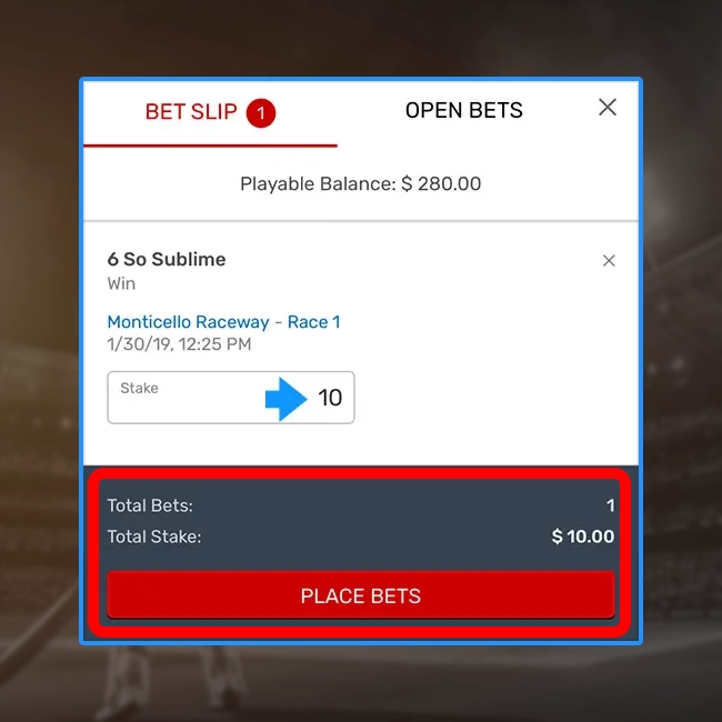 Review all the details: the selected event, bet type, and amount. Then click the “Place Bet” button to confirm and activate your bet.