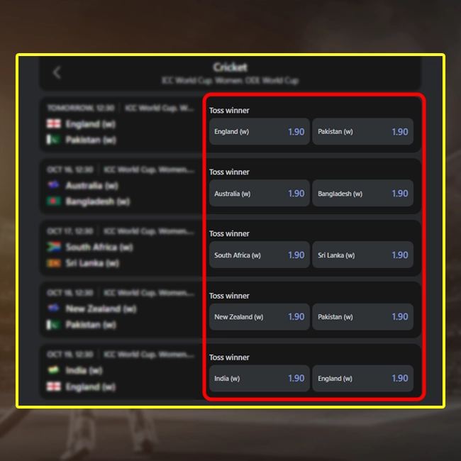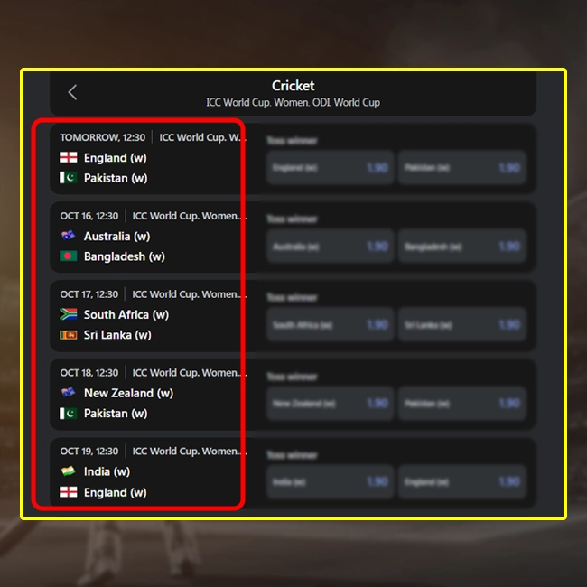 Cricket betting is the flagship of PariMatch sports betting. By providing pre-match and real-time match coverage, players usually have thousands of betting markets available at any given time. Using the filters located on the left side of the screen, it is easy to select the country, competition or team you want to bet on.