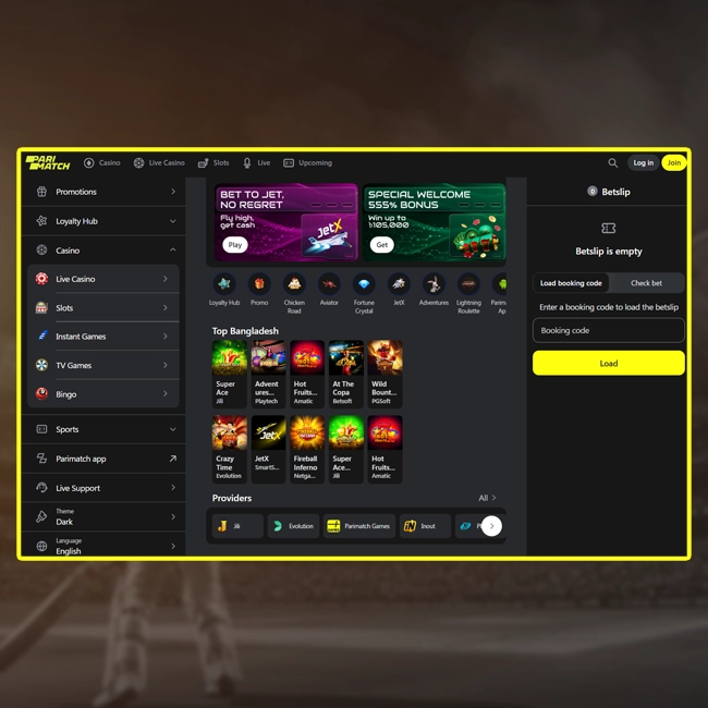 Parimatch is a popular bookmaker in Bangladesh, offering both sports betting and a full-fledged online casino. The platform offers a wide selection of games, including slots, blackjack, poker, roulette, table games, and live dealer games. Parimatch is licensed in Curacao and partners with renowned sports figures and teams, such as Conor McGregor, Mike Tyson, and several football clubs, enhancing its credibility and recognition worldwide. Registration is simple and quick, and to securely withdraw winnings, players are required to verify their accounts with documents.