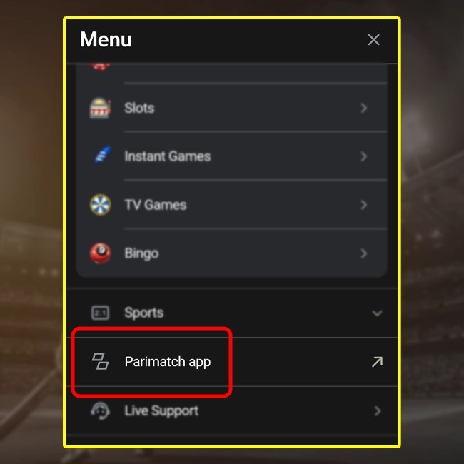Log in to the official Parimatch website and find the “Android App” section in the top menu bar. From here, you can download the app for Android devices.